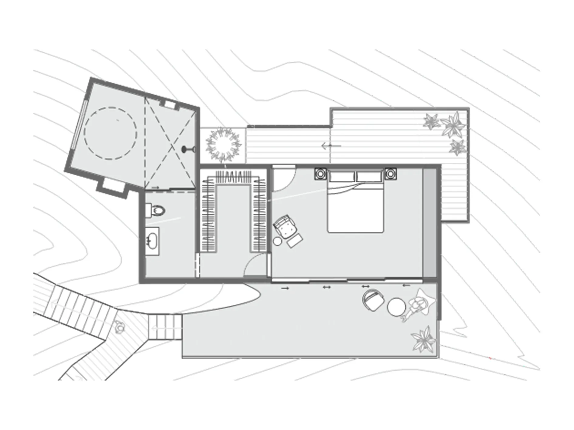 Serpiente toma su nombre del camino serpenteante que se eleva en curvas para llegar a ella. Con una vista imponente del mar y una energía expansiva, esta habitación en las faldas de un cerro es un refugio para el alma y el descanso.