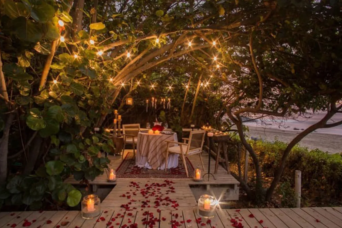 Un espacio íntimo solo para ustedes, con una mesa decorada con velas, flores y detalles especiales. Disfruten de una exquisita cena a la luz tenue, rodeados de un ambiente cálido y mágico